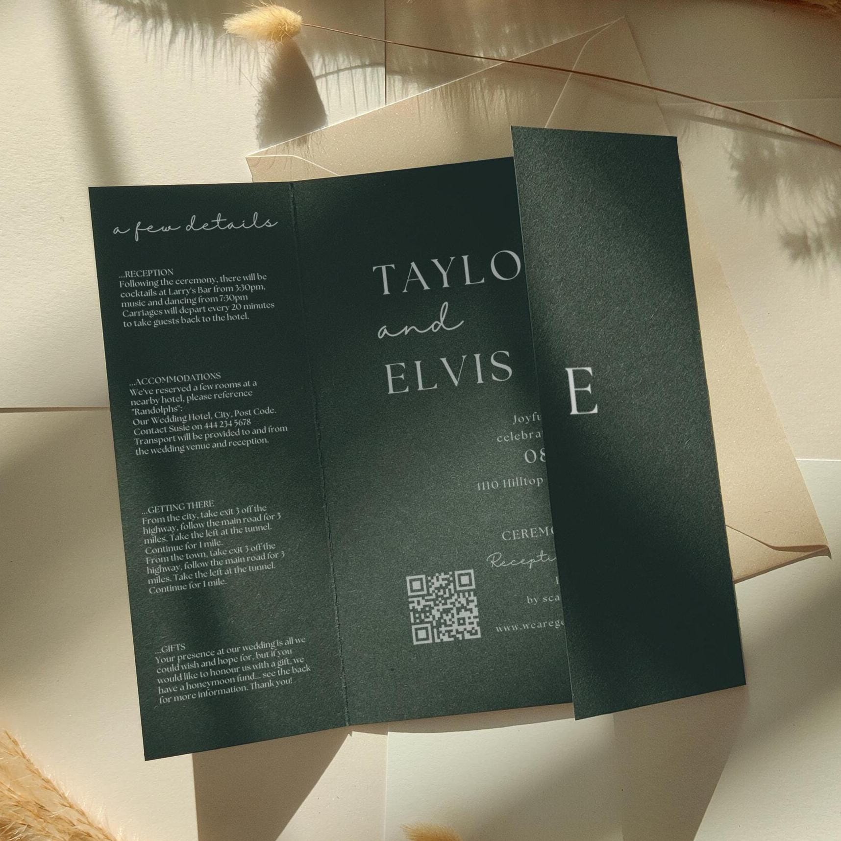 Dark Green Gatefold Invitations, Templates for Folded Green Invitations, Dark Green Wedding Theme.