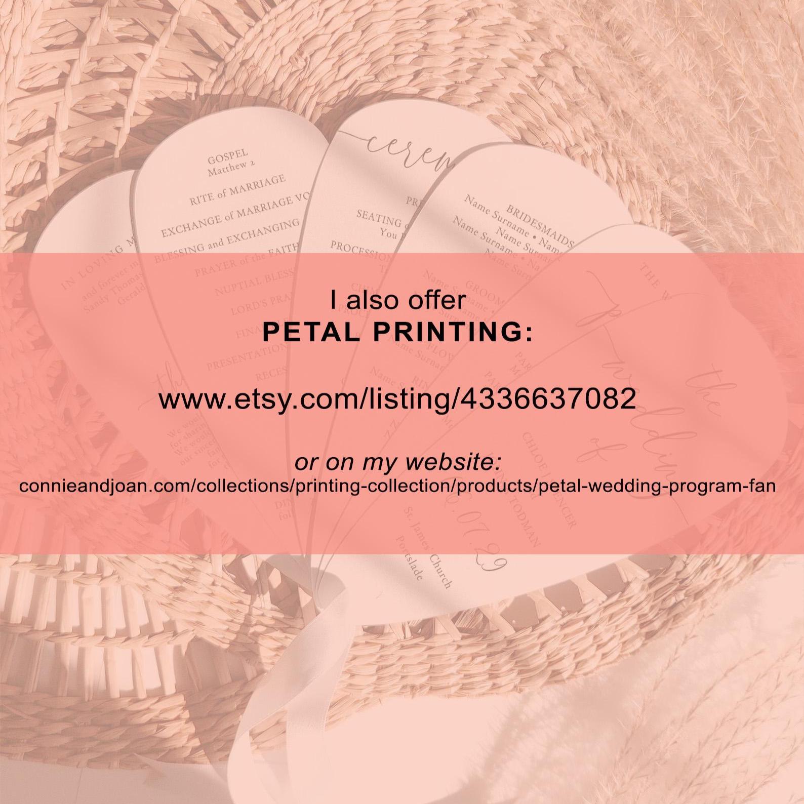 Petal Wedding program, fan wedding program printable template. Add as many petals as you like! Each petal is about 7 inches high by 3 inches wide.