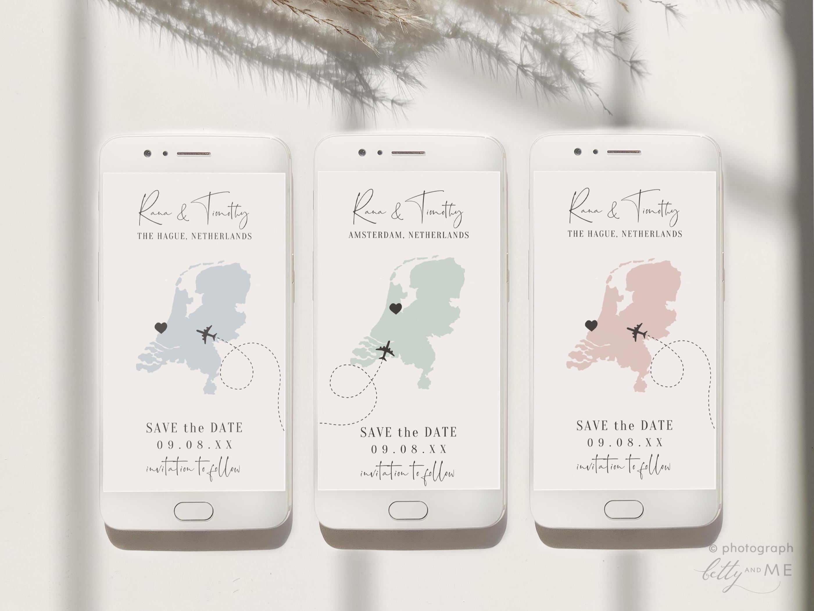 For your wedding anywhere in the Netherlands... edit and download these Text Message Save the Dates to send to your guests. Download as PNG or JPG.