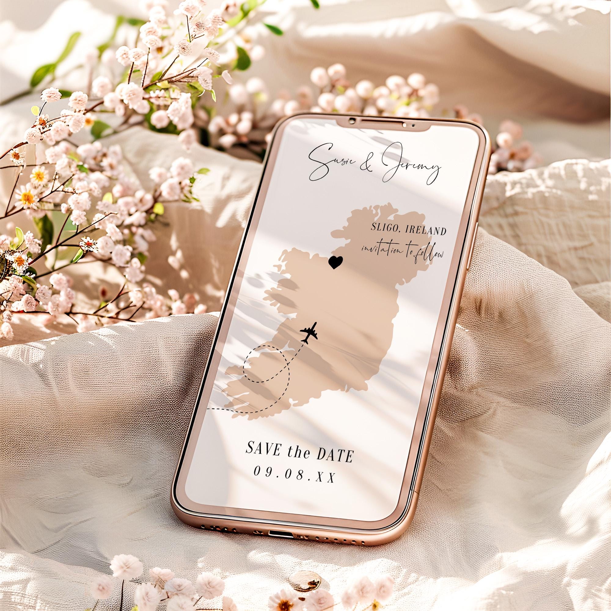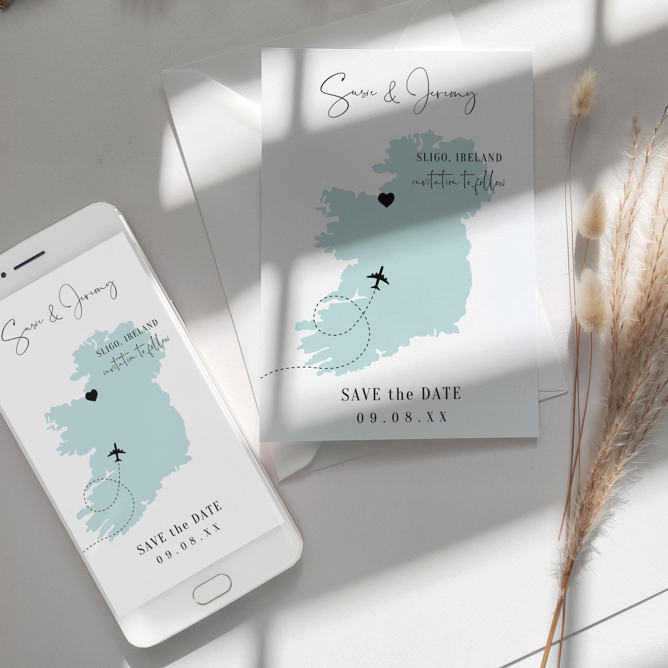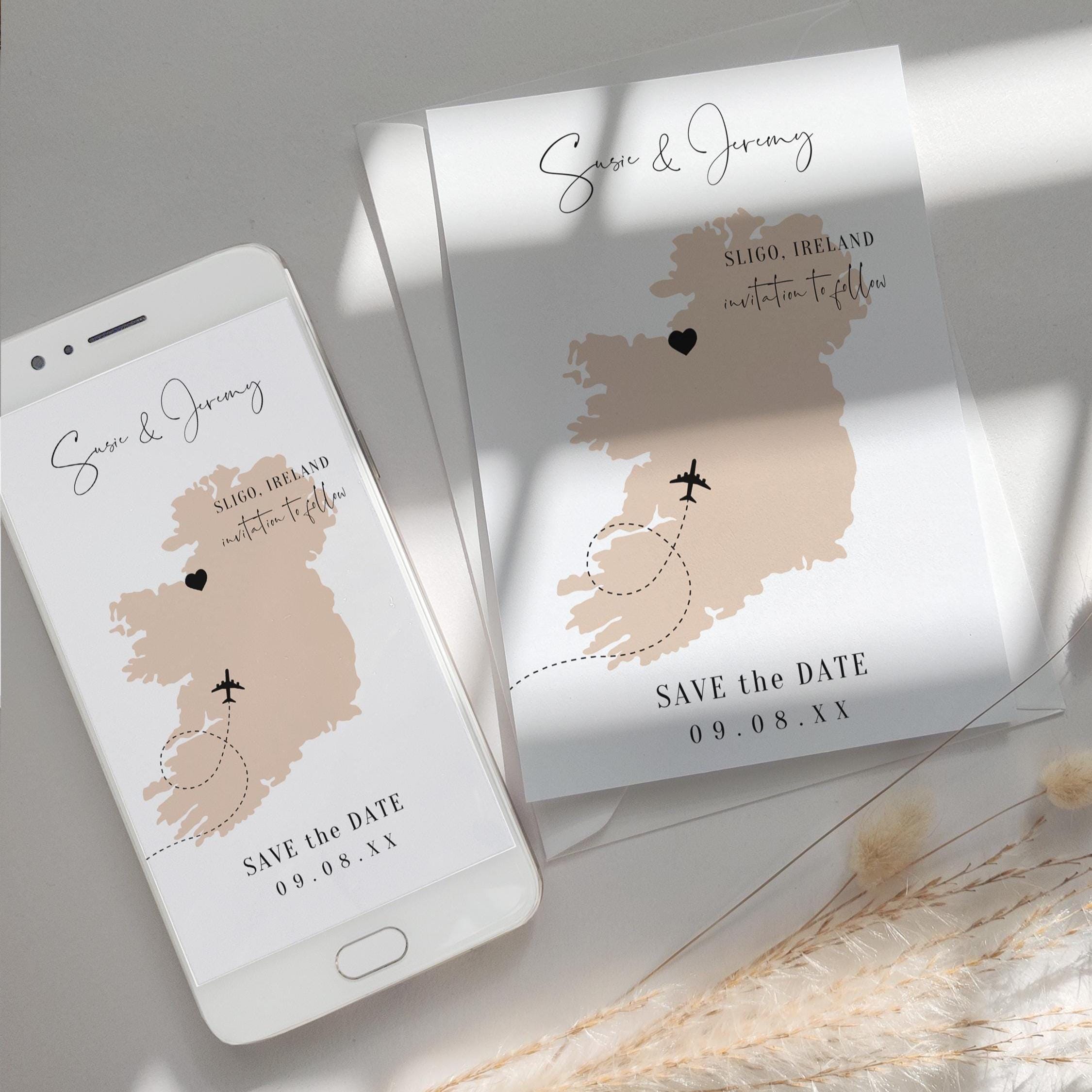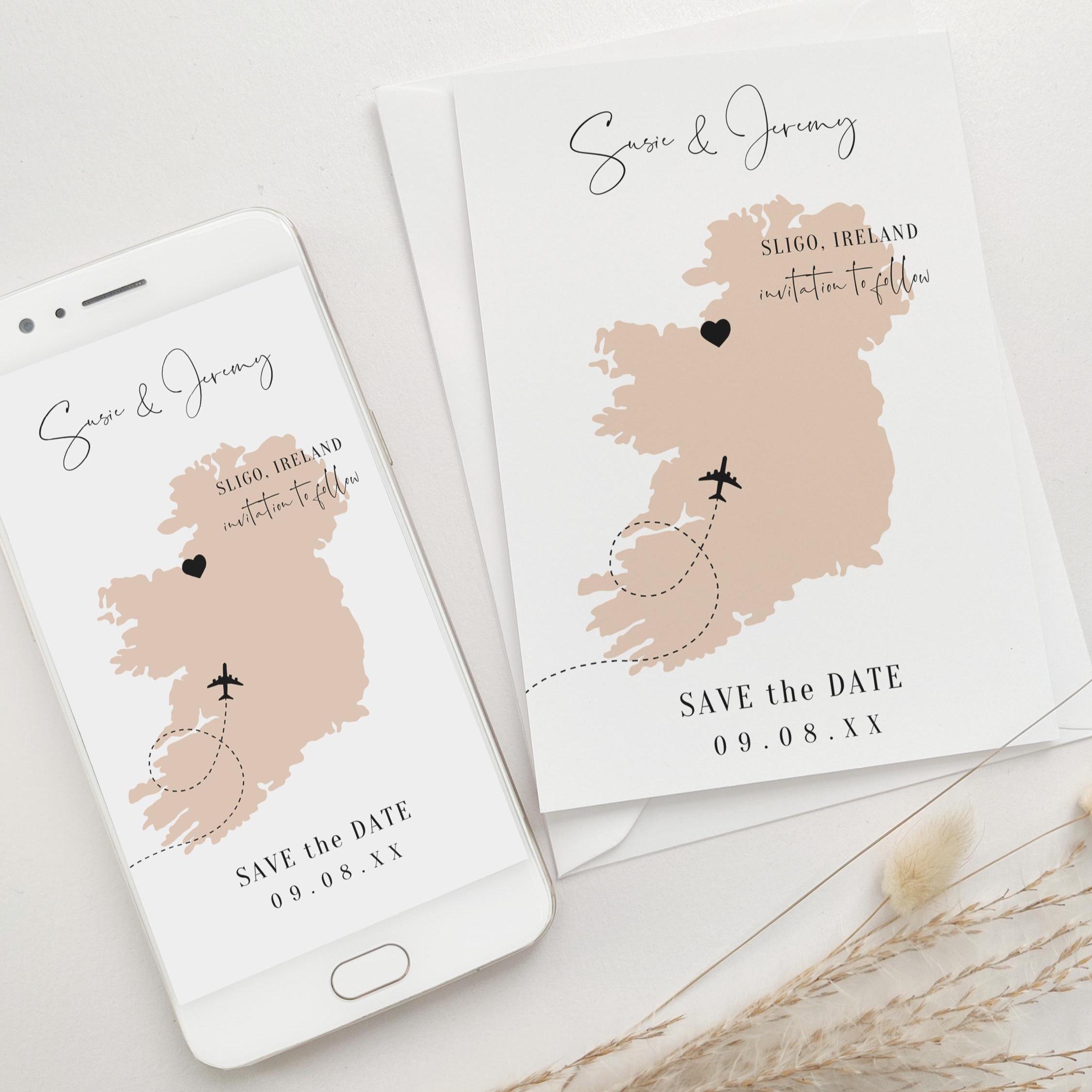 Digital Electronic Save the Dates for your Destination Wedding anywhere in Ireland. Easily re-position the heart on the map.