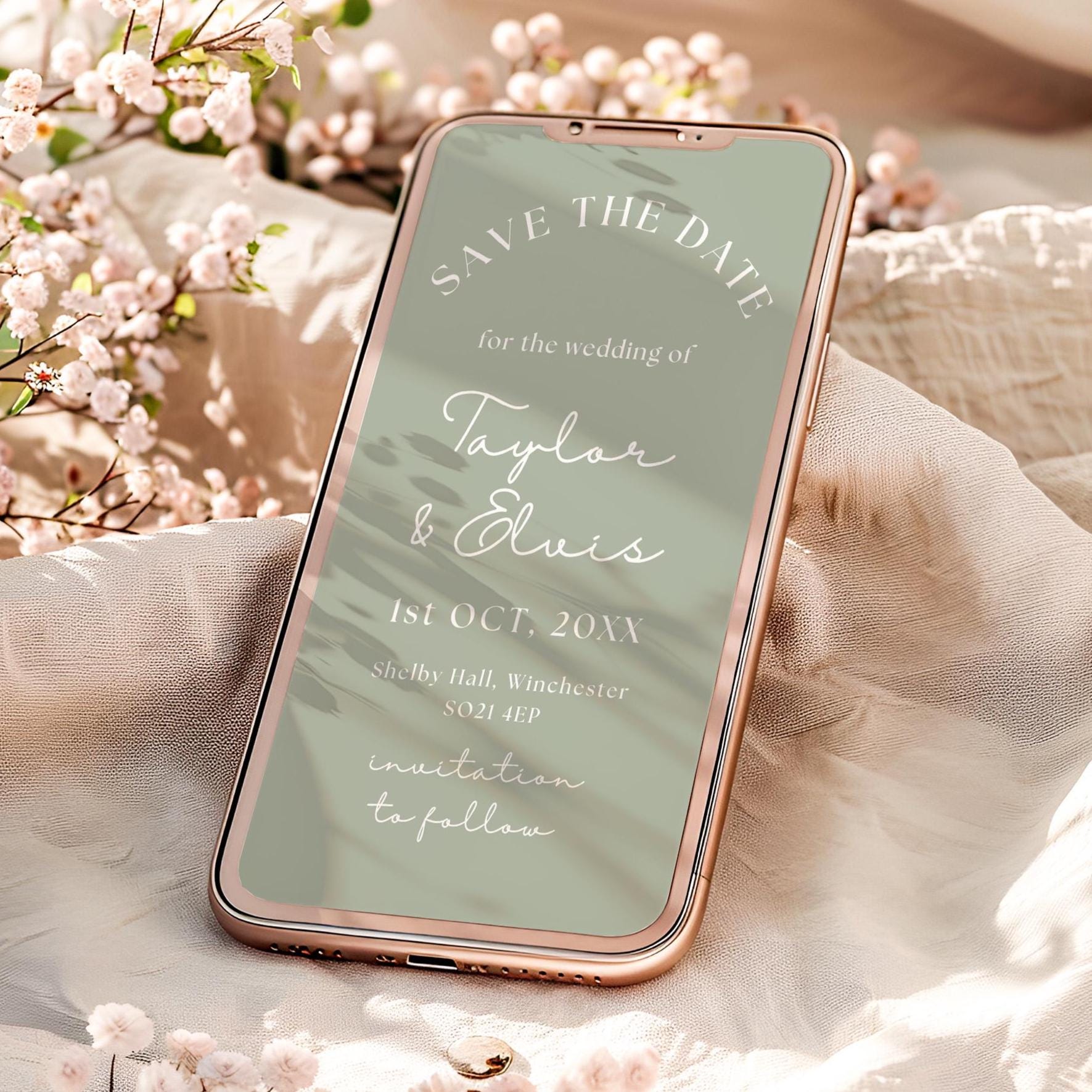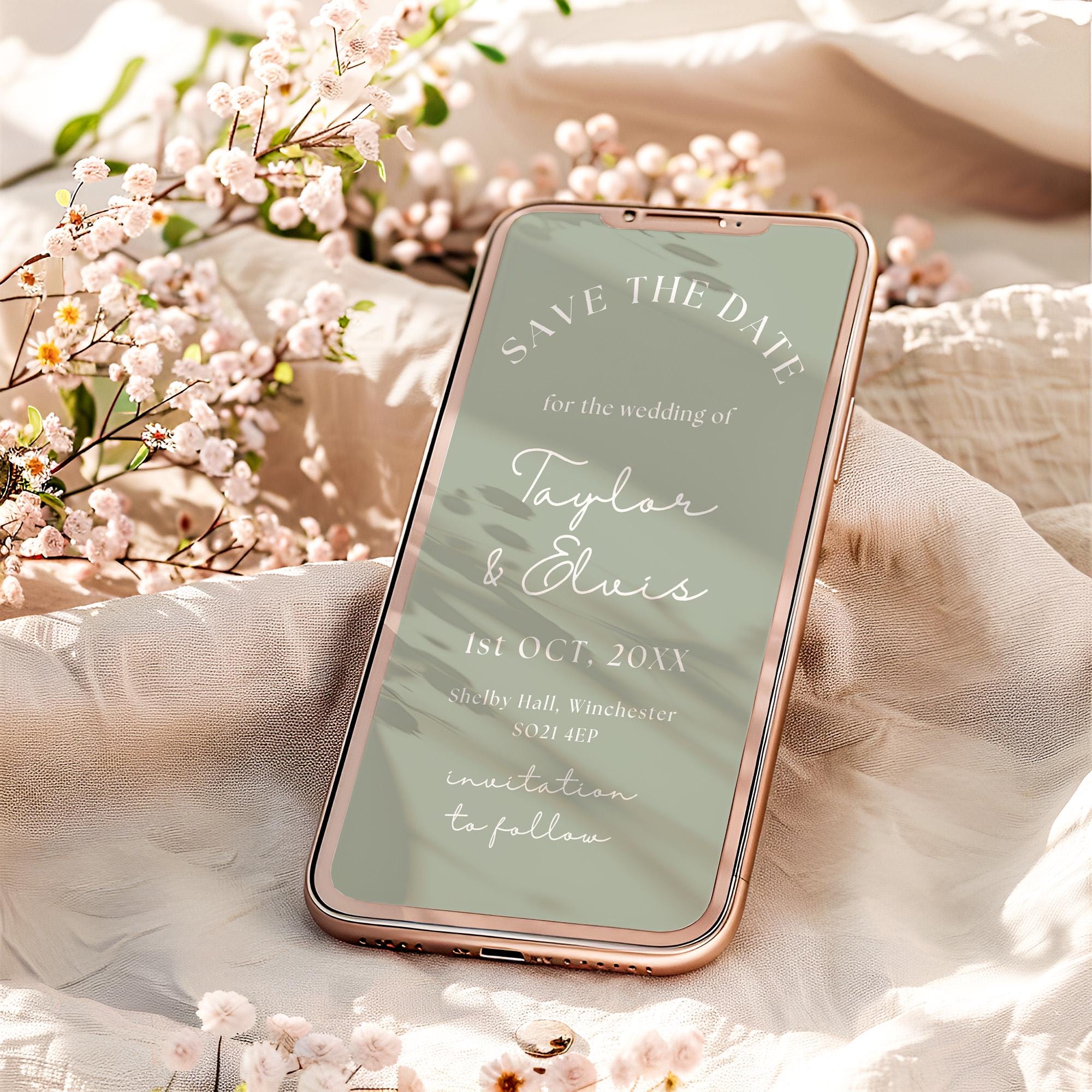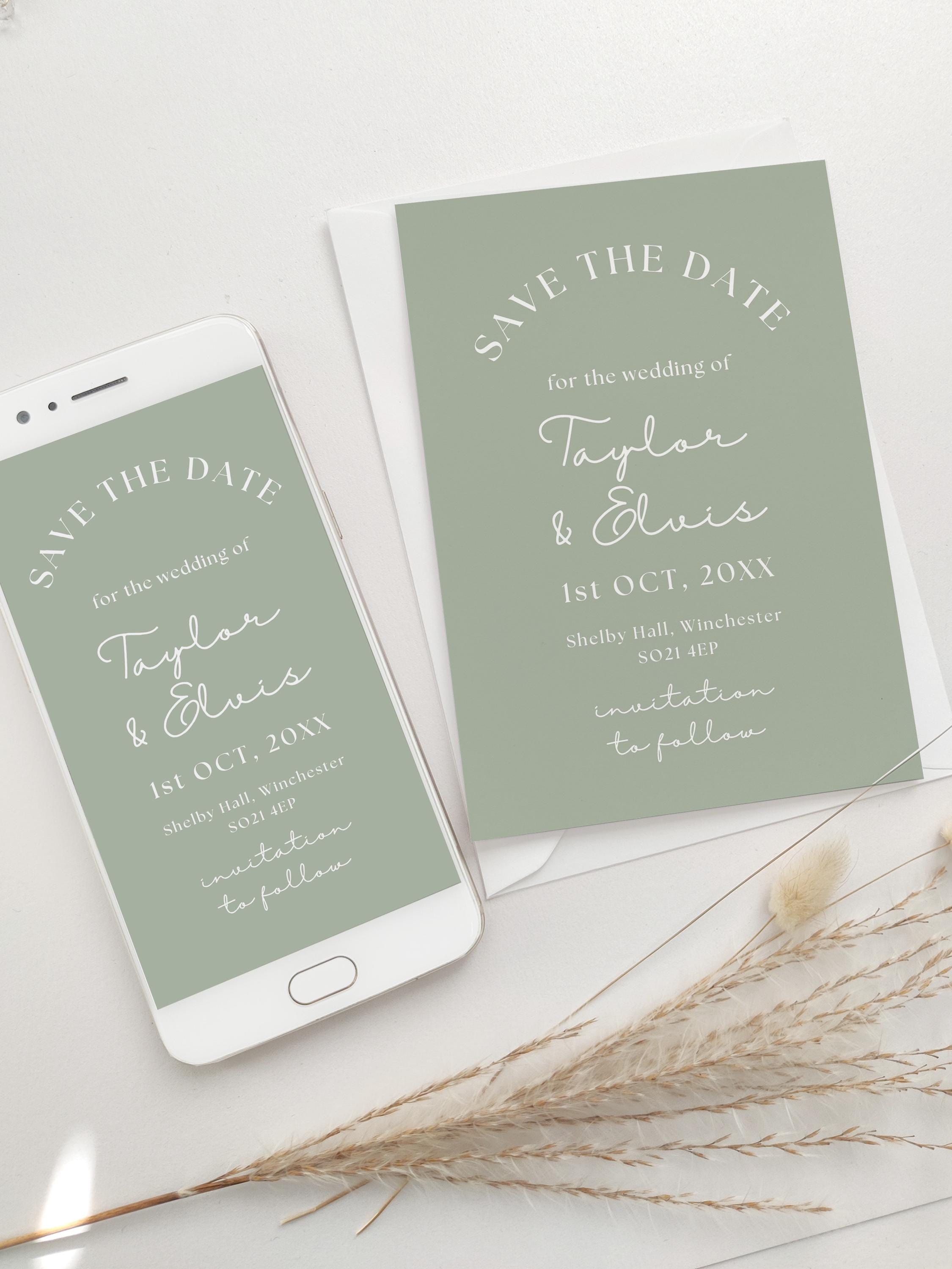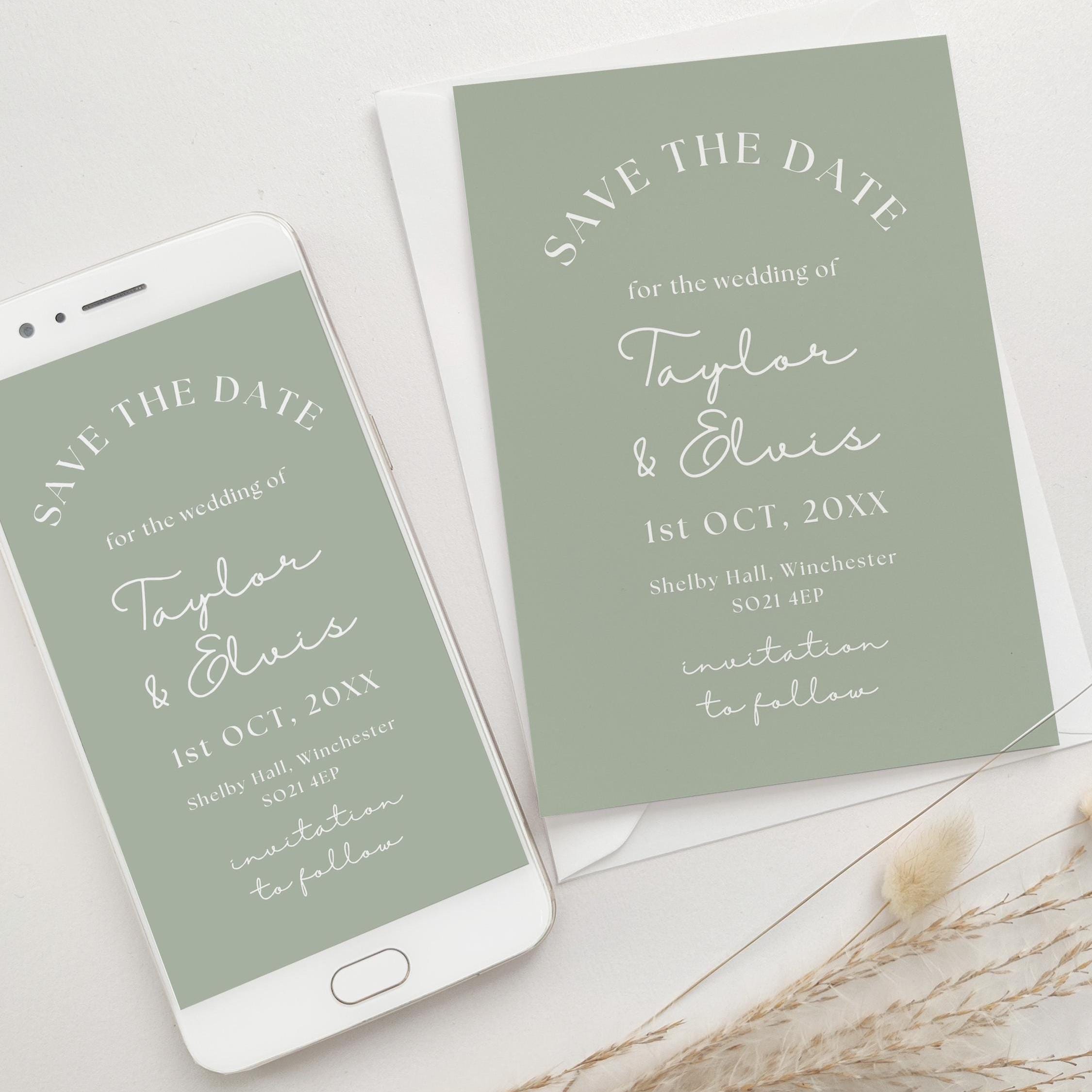 Sage Green Save the Date Templates for Digital Phone and Printable Save the Dates.