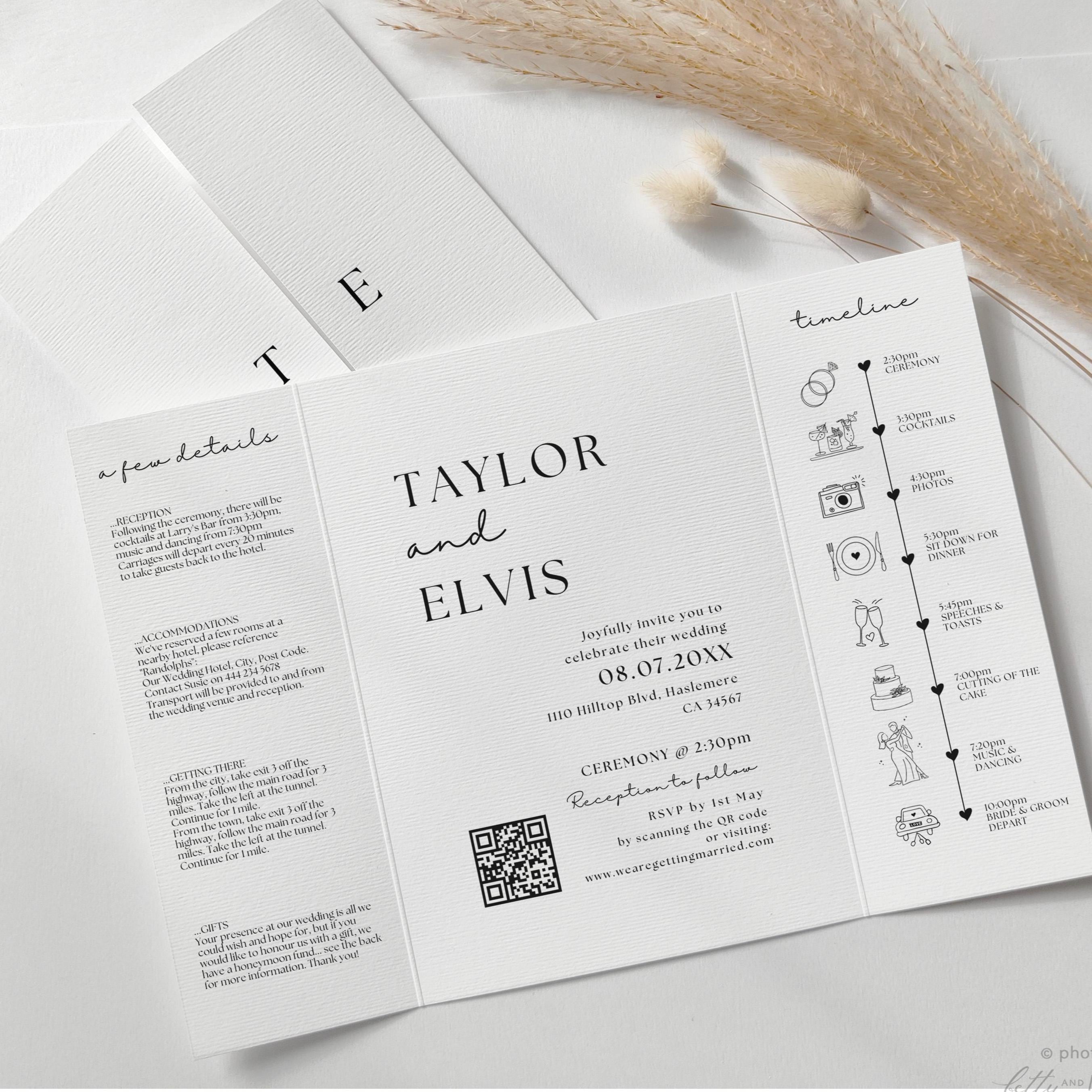 Minimalist Wedding Gatefold Invitations, Templates for Folded Invitations, Minimalist Wedding Theme.