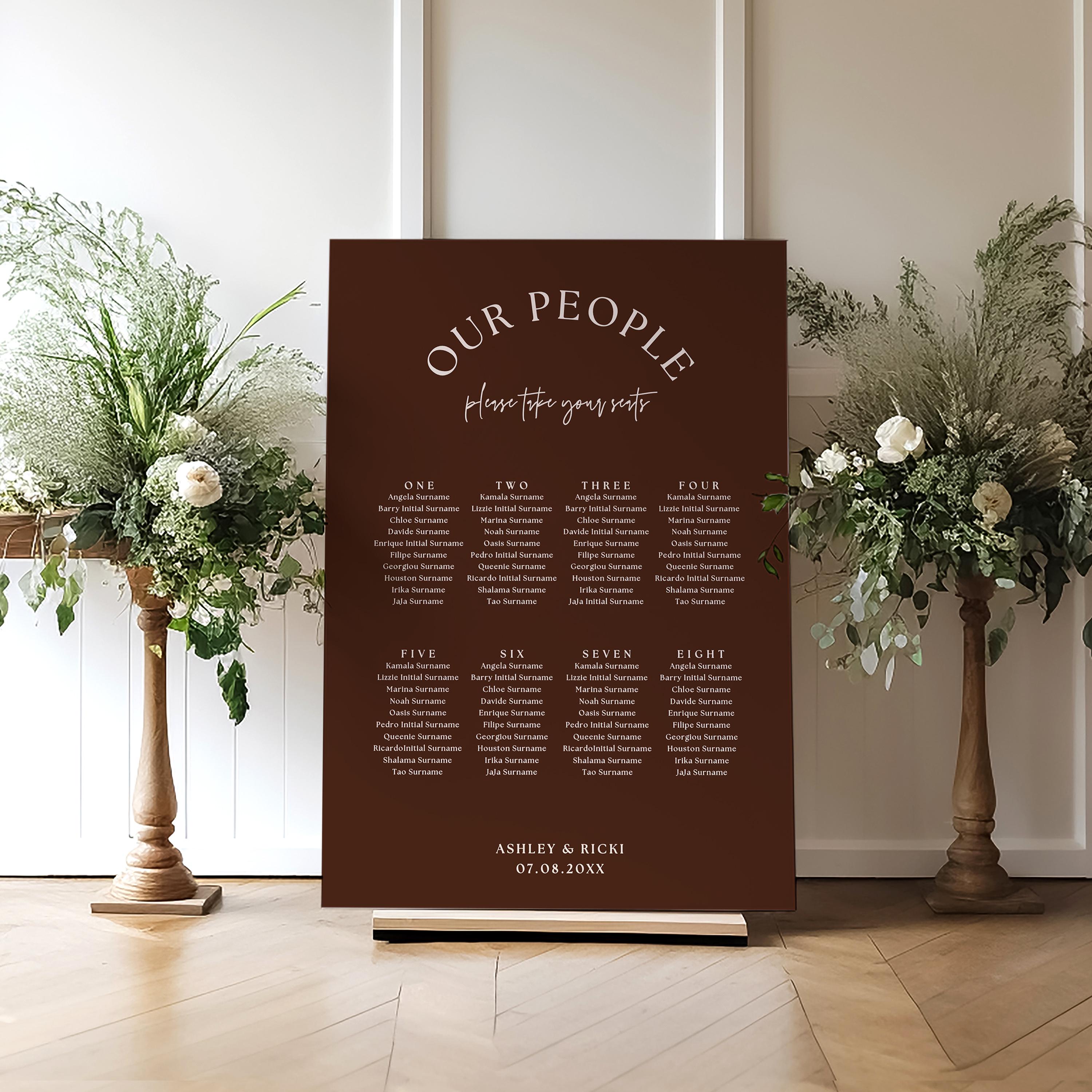 Espresso and Mocha Wedding Seating Plans. Printable templates in 7 sizes.