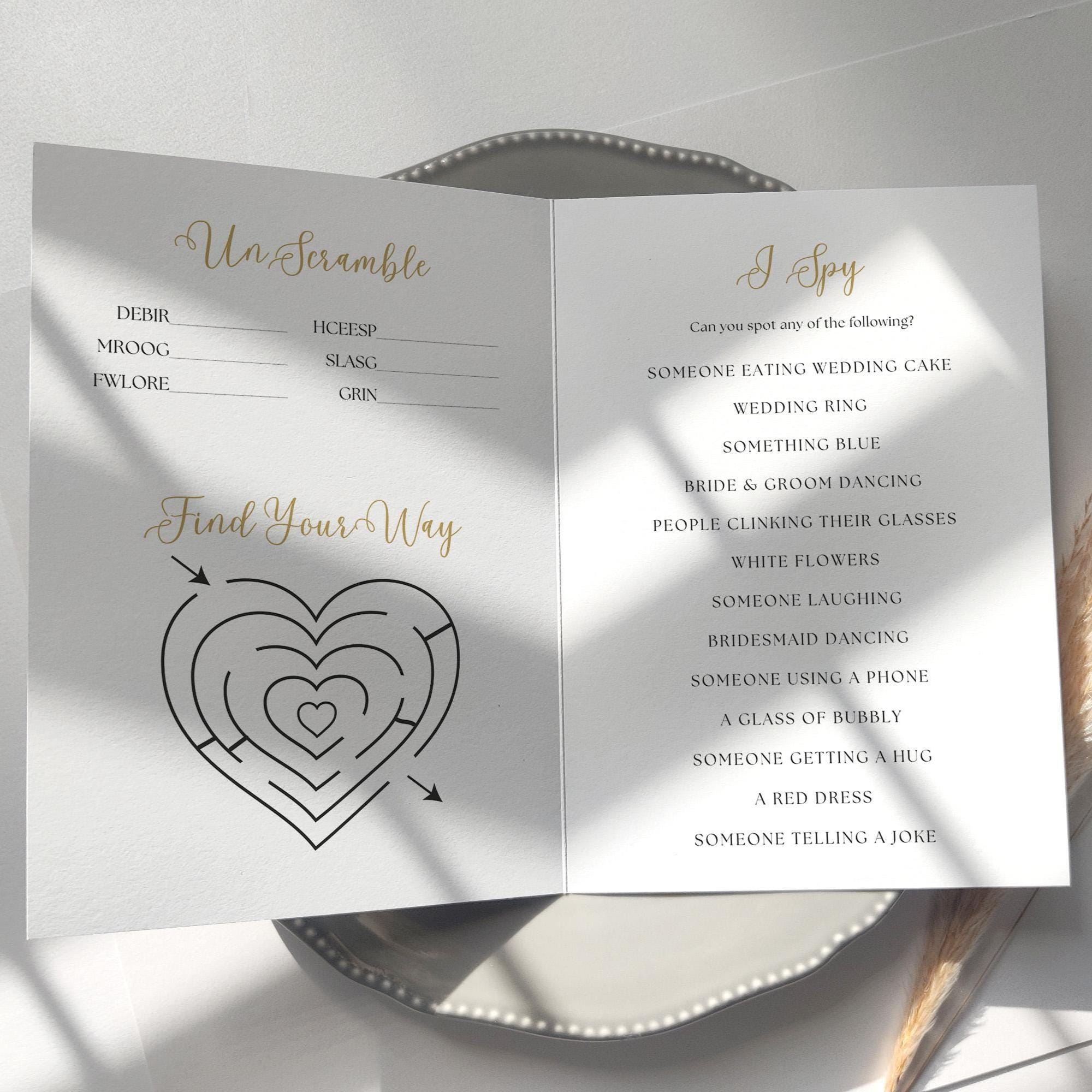 Kids Activity Book Wedding Activity Pack for Kids. Canva Templates so that you can edit and move things around, delete and add your own photos, games and words. Includes Word Search, Maze, i Spy, Drawing, etc... 10 sides of activities! ❤